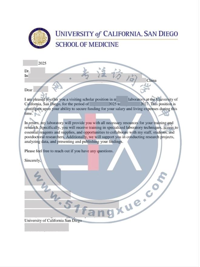 在51访学网的专业协助下,N医生成功获得了加利福尼亚大学圣迭戈分校访问学者的机会。这一重要突破既是对她研究能力的高度认可★■★◆,也为她开启了新的学术征程。加利福尼亚大学圣迭戈分校将为N医生提供广阔的学术平台,使她能够与国际一流专家进行深入交流与合作。